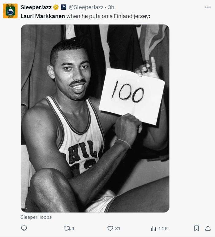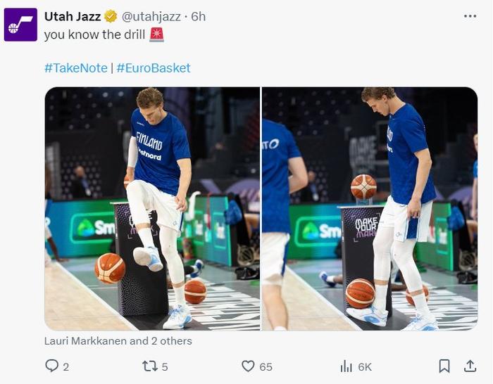 我还统计了自6小时前-现在,犹他爵士队官方发布的14条推文(有直发、转推)都跟马尔卡宁有关,毕竟马卡是爵士队的第一球星,且他在欧洲杯太出色,首秀是28分,第二场是43分。